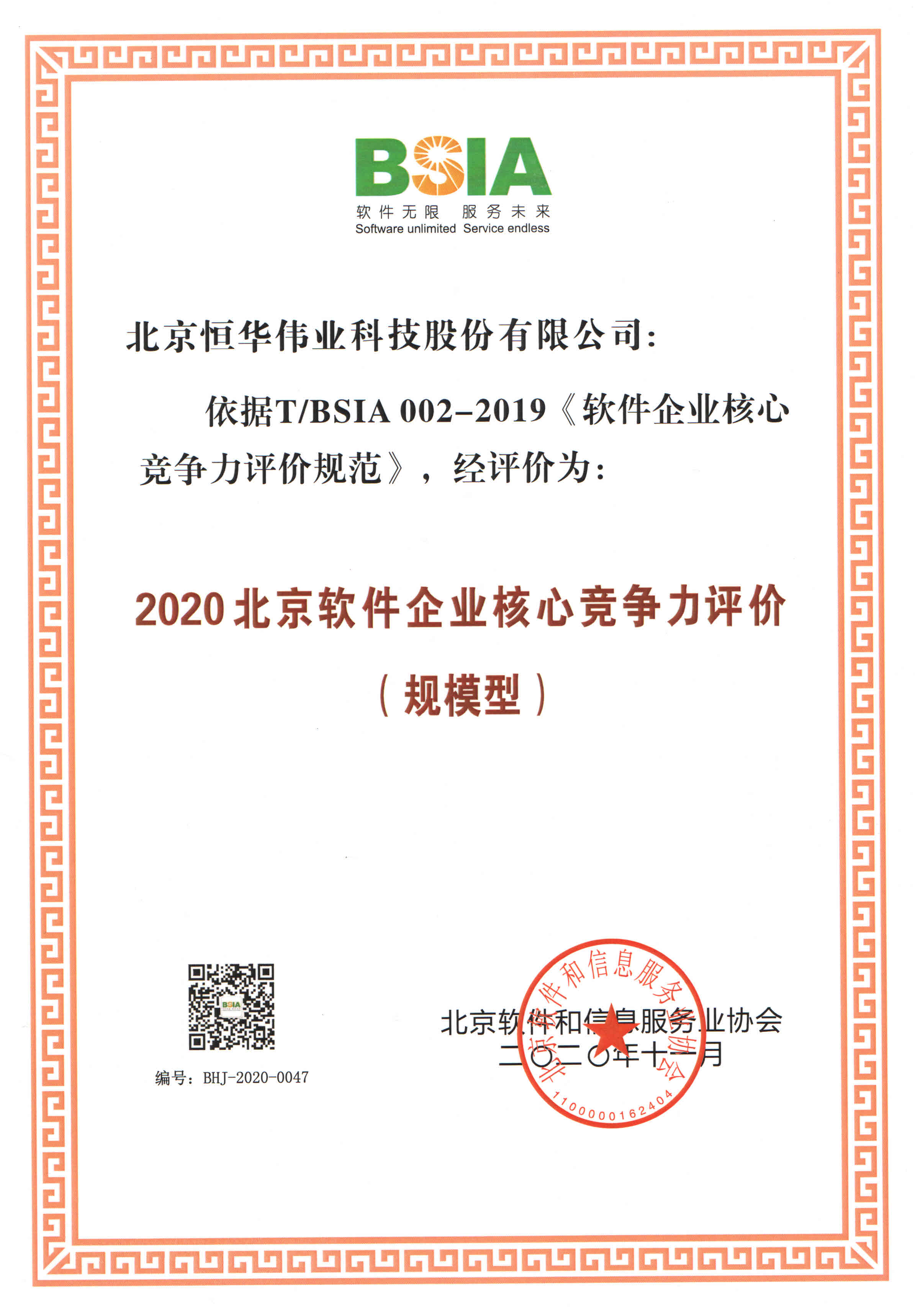 2020年11月17日,北京軟件和信息服務業協會(簡稱“北京軟協”)發布了《2020北京軟件和信息服務業綜合實力百強報告》,恒華科技入選“2020北京軟件和信息服務業綜合實力百強企業”。公司憑借良好的發展和強大的創新能力,連續3年獲得百強企業稱號,充分體現了業界對公司實力的高度認可。